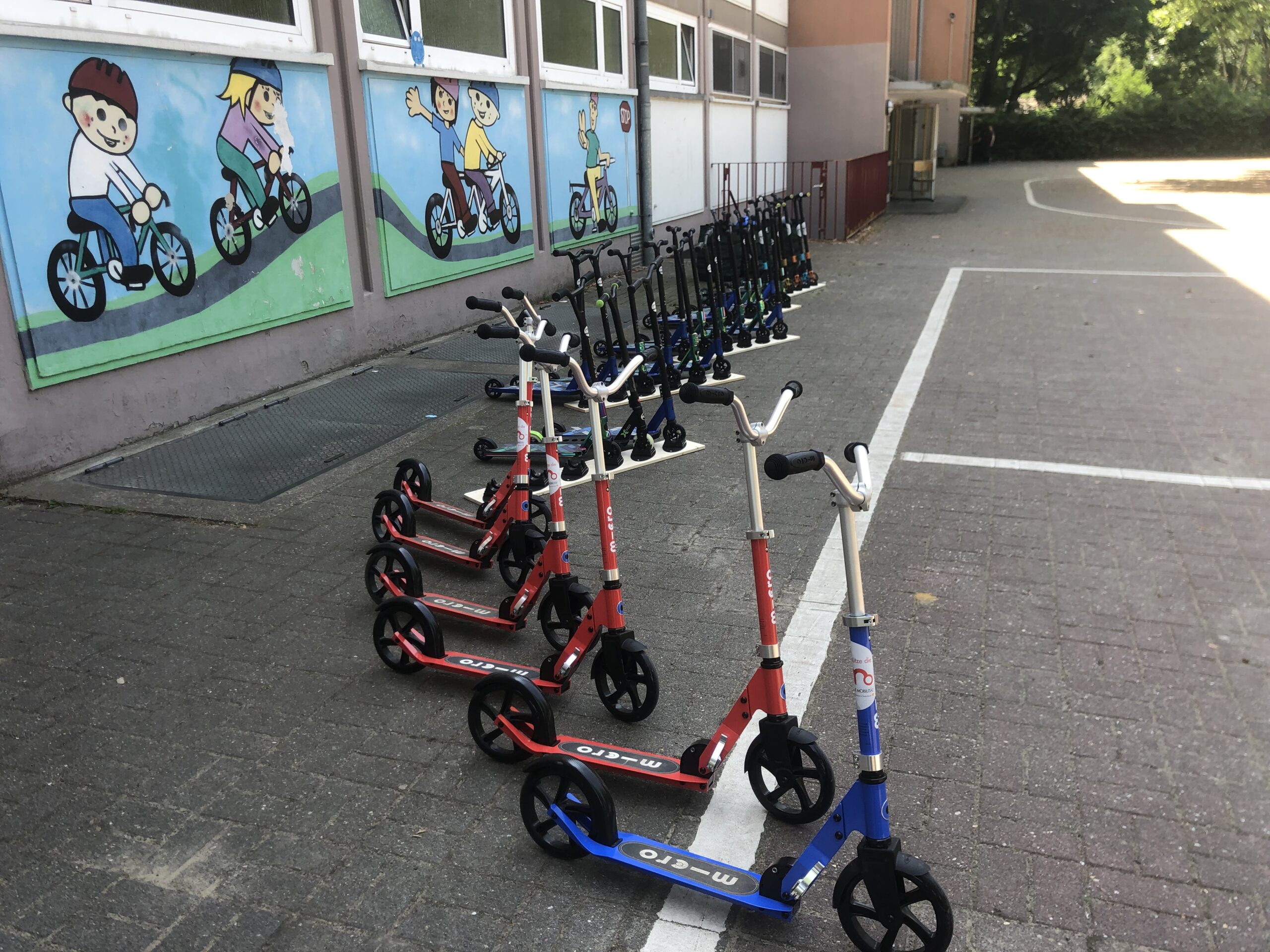 Im Oktober 2024 haben wir den Aufbau eines Rollerpools im Rahmen eines Projektes zur Förderung von Mobilität und Verkehrserziehung finanziell unterstützt und nun eine Rückmeldung aus Gelsenkirchen erhalten: "[...]Der Rollerpool ist aufgebaut und um die notwendige Schutzausrüstung ergänzt. Die selbst gebauten Parkplätze schaffen Ordnung und schonen das Material. Ich hatte es angekündigt, das Material soll nicht nur unserer Schule zur Verfügung stehen. Über das Roller Fit Programm der ADAC Stiftung und die Lehrerfortbildung der Bezirksregierung schulen wir immer wieder Lehrkräfte, damit sie das Tretrollerfahren sinnvoll und sicher in den Unterricht integrieren können. So ist es ganz aktuell so, dass die Hälfte des Materials bis zum Herbst an eine Förderschule in Recklinghausen ausgeliehen ist. Die andere Hälfte wird nächste Woche an unseren neuen Teilstandort gebracht, wo wir auf einer angrenzenden Freifläche gut üben können und sogar den hier verorteten Skatepark für fortgeschrittene Fahrtechniken nutzen können. [...] Ich danke Ihnen und der Stiftung, auch im Namen unserer Schule noch einmal sehr für die großzügige Unterstützung und die Möglichkeit, unsere Schülerinnen und Schüler sicherer für den Straßenverkehr zu machen und ihnen ein umweltverträgliches und modernes Fahrgerät anbieten zu können."